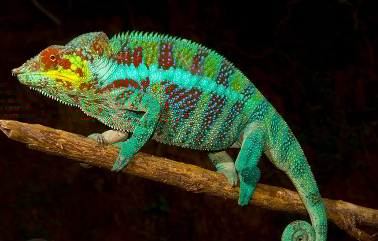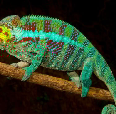 強勾亞 (Djangoa) 原產於馬達加斯加,成體尺寸約20公分。建議飼養溫度:白天26~30度,晚上15~24度。對人工環境適應良好(★★★★☆),台灣市場稀有程度為中等(★★★☆☆)。擁有常見的綠底藍色與少見的紫色、紅色個體,展現豐富色彩變化。