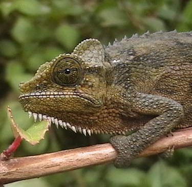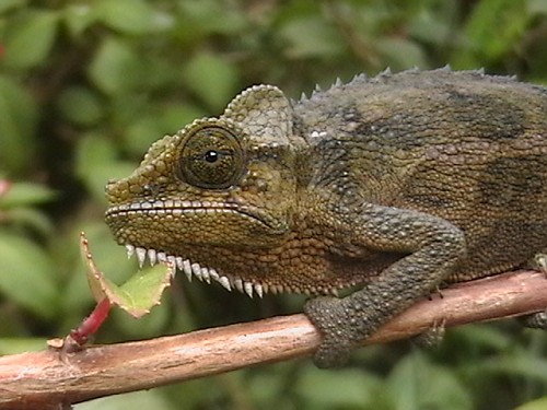 鼻尖有一個瘤狀突起,頭部的頭冠相當 大,而且下顎有棘狀鱗並排。不僅體色與皮 膚質感可見地區差異,連個體之間的差異也 很大。烏干達的群體則是棲息於海拔 較高的地區,體型纖細,全長較長且鱗片的 質感光滑。近年來較常在市面上流通的肯亞 群體,體型呈圓弧狀,在肯亞也出現地區與