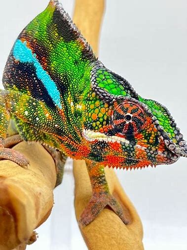 產下的蛋放在孵蛋器中,保持22-26度的溫度大約8-10個月可以孵化,算是孵化期比較短的變色龍.幼體可以與成體相同的條件飼養,只是食物和環境都可以比較小.不同產地的七彩常被用來雜交以產生特殊的體色型,但這在生物學上來說並不是一種值得鼓勵的做法.基本上,雌性變色龍的壽命都不長,一般都是2-3年便會死亡,不論是在人工飼養或是在野外都一樣.這與它們產卵有很大的關係.雄性大約可以活上5年左右.